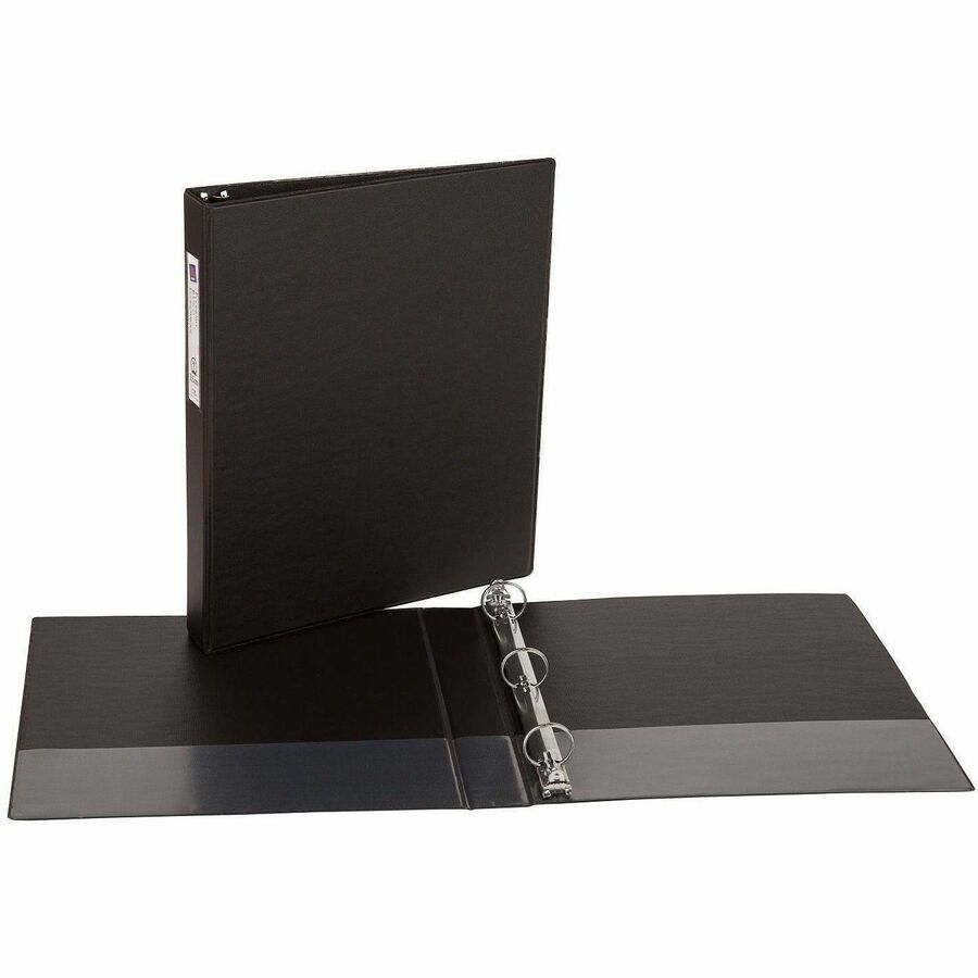 | Marketing Information | For convenient organization of your documents, it doesn't get much simpler than this handy Economy Binder with a label holder. Metal round rings mounted on the spine hold your letter-size papers securely in place to let you flip through notes, reports and more without getting your pages out of order. Binder is ideal for your class notes, employee handbooks and other important papers. 1" ring capacity holds approximately 175 sheets. Slip loose pages into the two interior pockets for easy access later. Each pocket holds up to 20 sheets. The black matte cover and spine combine with a black matte interior to reduce glare. Binder also features concealed rivets, vinyl construction and a sturdy chipboard core. |