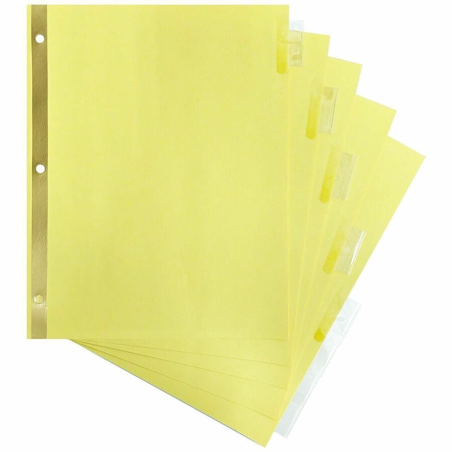 | Marketing Information | Insertable tab indexes are reinforced on both sides at the binding edge. The 9/32" holes have gold-colored, Mylar-reinforcement to prevent tear-out. Eight-tab indexes include blank white inserts and are compatible with laser and inkjet printers. |