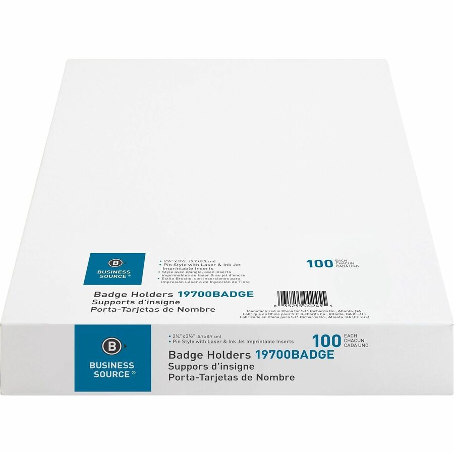 | Marketing Information | Make employee name badges quickly and easily with these Name Badge Kits. Kit includes insert cards and side-loading, pin-style holders. Side-loading design offers easy access. Inserts are compatible with both laser and inkjet printers and are 0.25mm thick. |