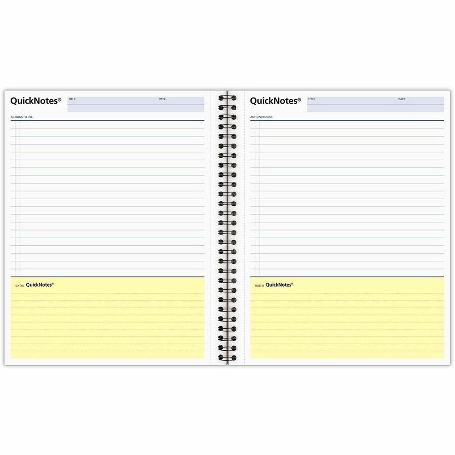 | Marketing Information | Perfect for use with smartphones and mobile devices, this QuickNotes planner is designed to meet your everyday note-taking needs. Each spread provides a yellow QuickNotes section for highlighting important information. Professional notebook features durable, paper-based linen cover with double-wire binding. Premium, 20 lb. bond paper sheets are perforated for easy, clean removal. Twin-wire bound notebook features 80 ruled sheets for 160 pages of notes. |