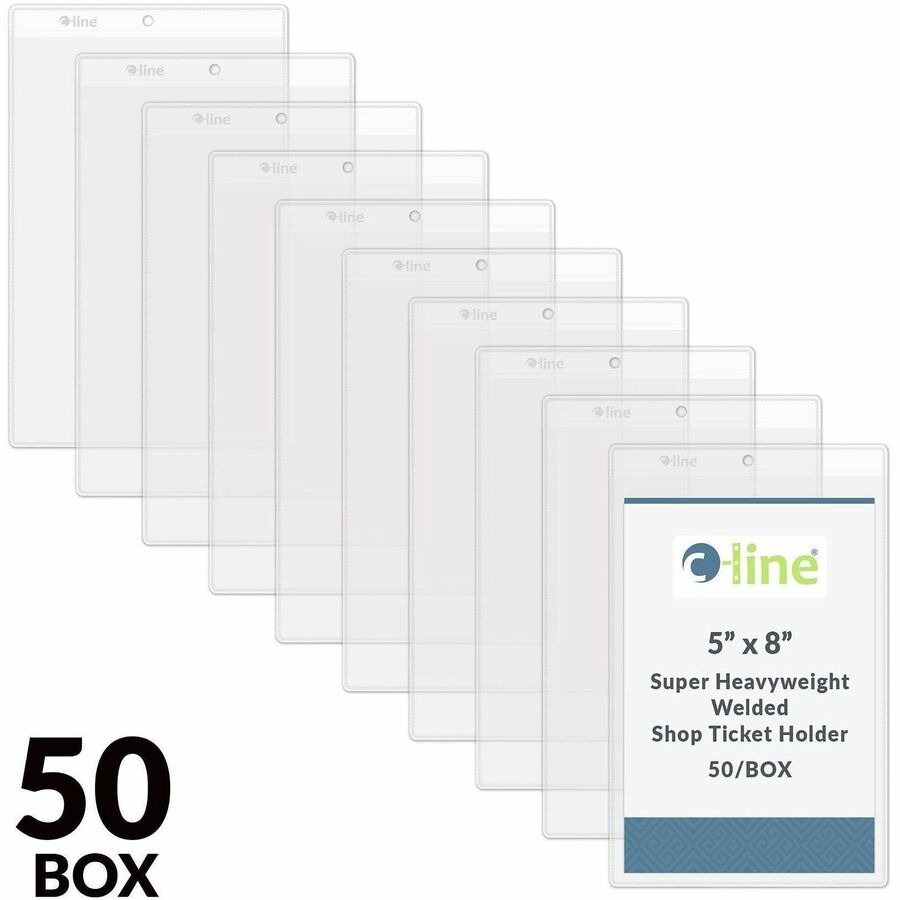 Use vinyl ticket holders to store and display two-sided documents. Shop Ticket Holders keep job tickets, work orders, production schedules, inventory cards and more secure and protected. Holder is great for two-sided documents because both sides of these strong vinyl holders are clear. Welded nonrip seams hold up even in roughest environments. Punched hole at the top is designed for hanging. |