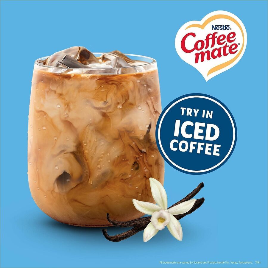 Stir up your perfect cup of coffee with Coffee mate French Vanilla creamer singles. Liquid creamer uses both natural and artificial flavors to add rich, smooth vanilla flavor to your cup of coffee. Each single comes shelf stable - no refrigeration needed. Each single-serve creamer maintains quality for about 9 months, unopened. Gluten-free, cholesterol-free vanilla creamers made with Kosher dairy accommodate dietary restrictions so most can enjoy. |