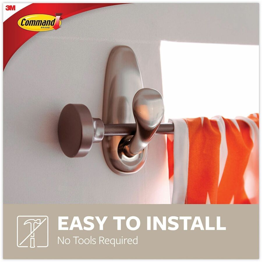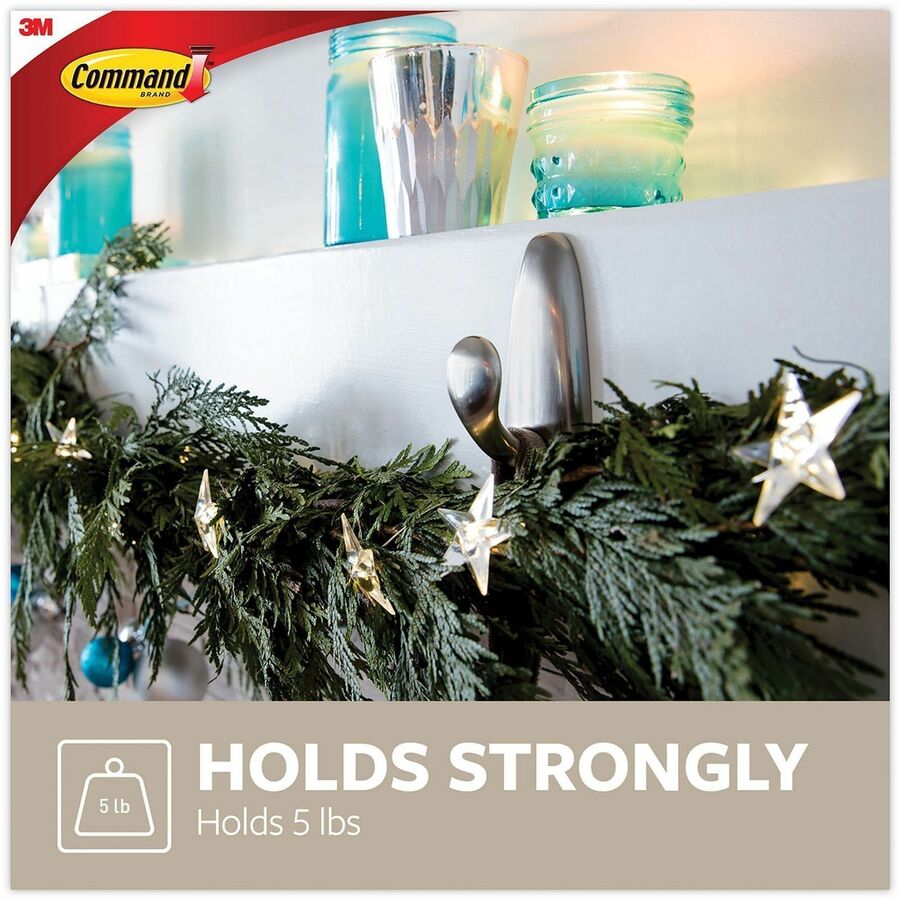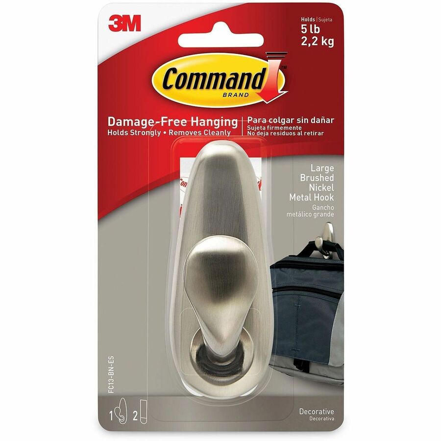 Using the revolutionary Command Adhesive, Command Decorative Hook holds strongly on a variety of surfaces, including paint, wood, tile and more. It also comes off cleanly - no holes, marks, sticky residue or stains - so you can take down and move your Command hooks as often as you like. Reusing this large hook is as easy as applying a Command Refill Strip (sold separately). That means you can take down, move and reuse it again and again. Classic Metal Hook with a brushed nickel finish holds up to 5 lb. |