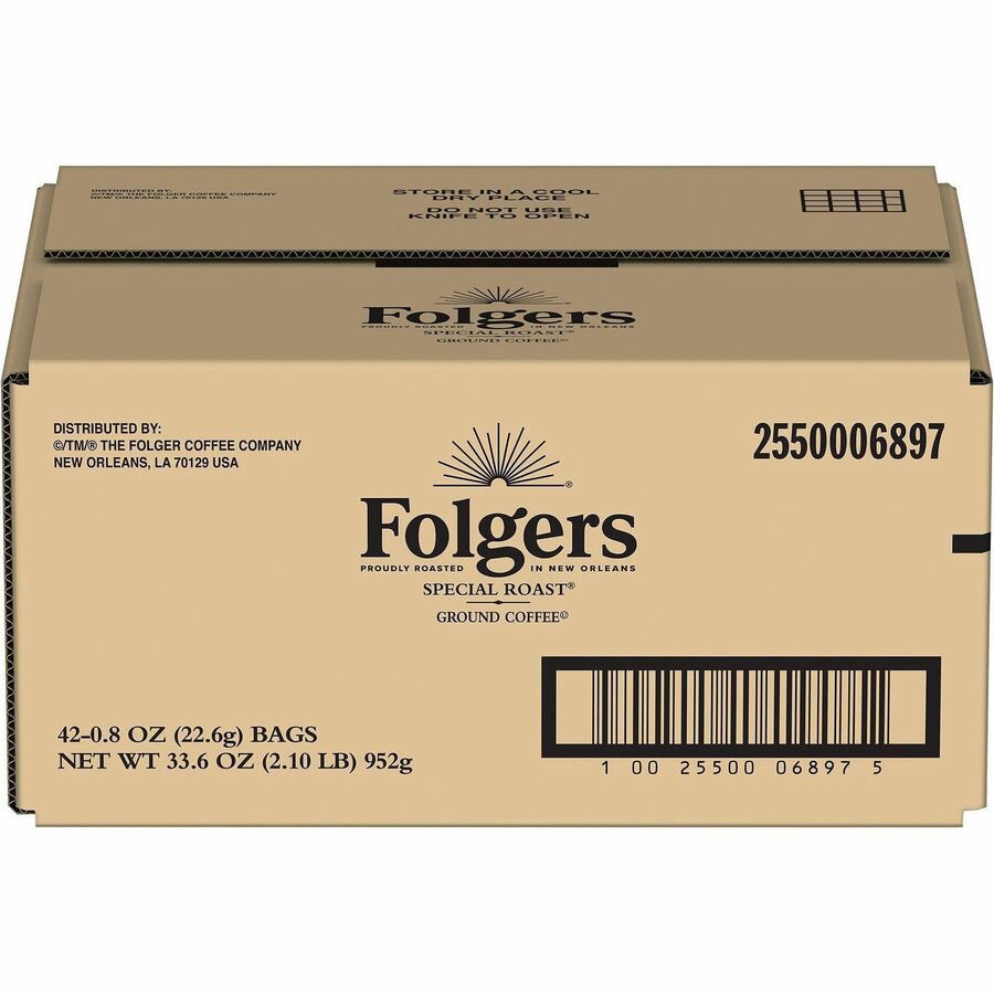 | Marketing Information | Folgers Special Roast Coffee is a well-crafted, medium-roasted blend that has an exceptionally balanced taste. Convenient fraction packs are a low-touch way to deliver consistent flavor cup after cup. Each pack is premeasured and ready for your commercial coffee brewer, limiting potential points of contact with grounds. The rich flavor of Folgers is more than just coffee - it's tradition. |