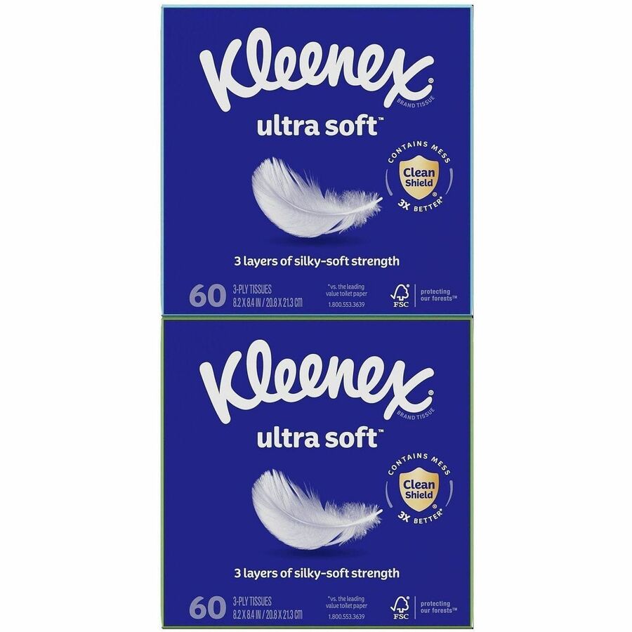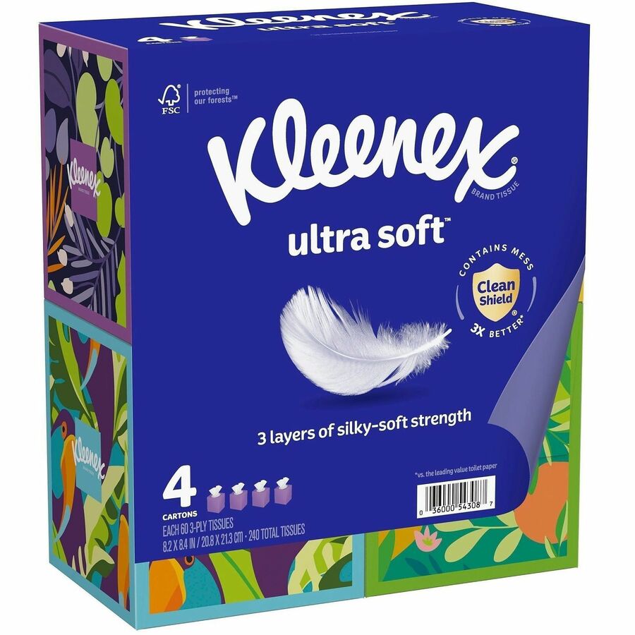 | Marketing Information | Kleenex Ultra Soft Tissues offer dependable strength combined with ultimate softness. Three-ply tissues are soft, strong and fragrance-free. Tissue boxes come in a variety of colors and designs that complement your home, office or business decor. |