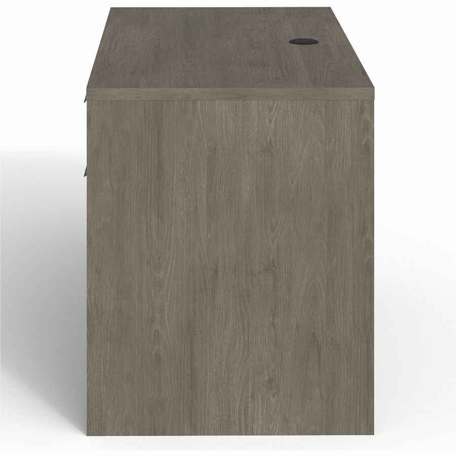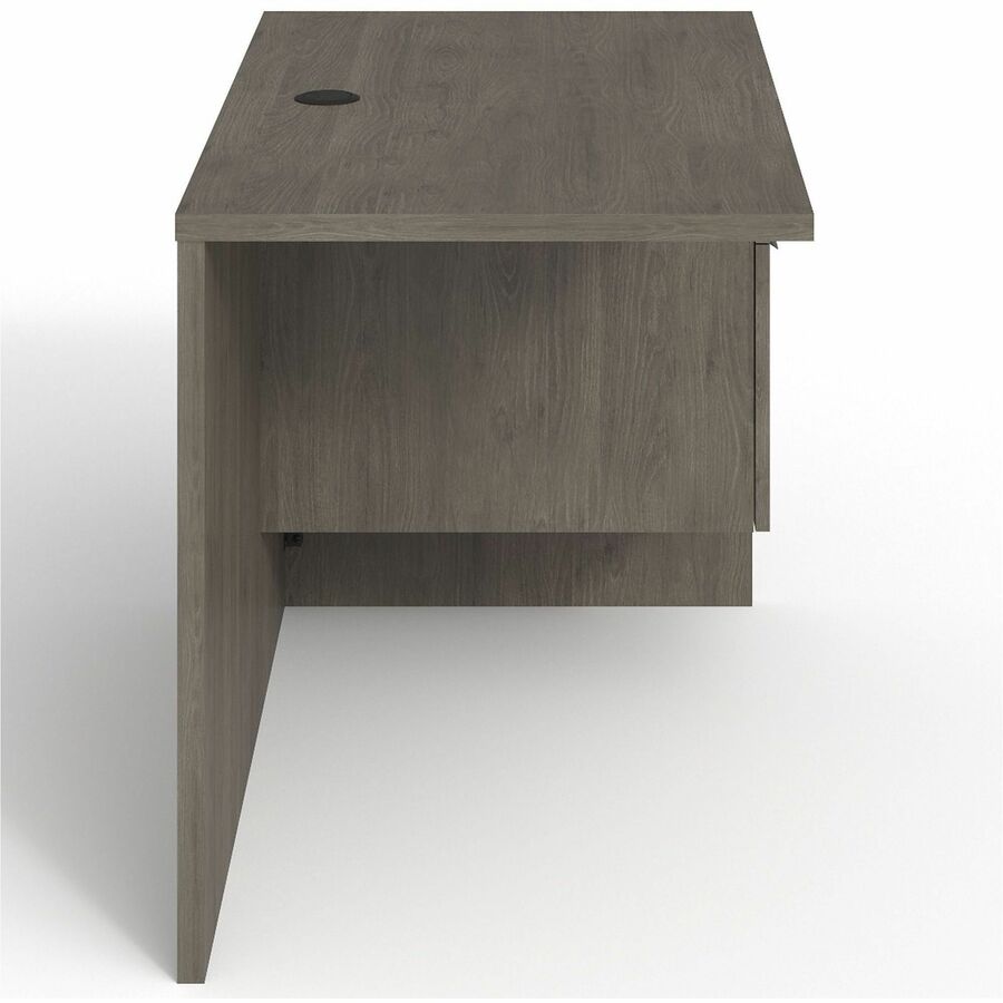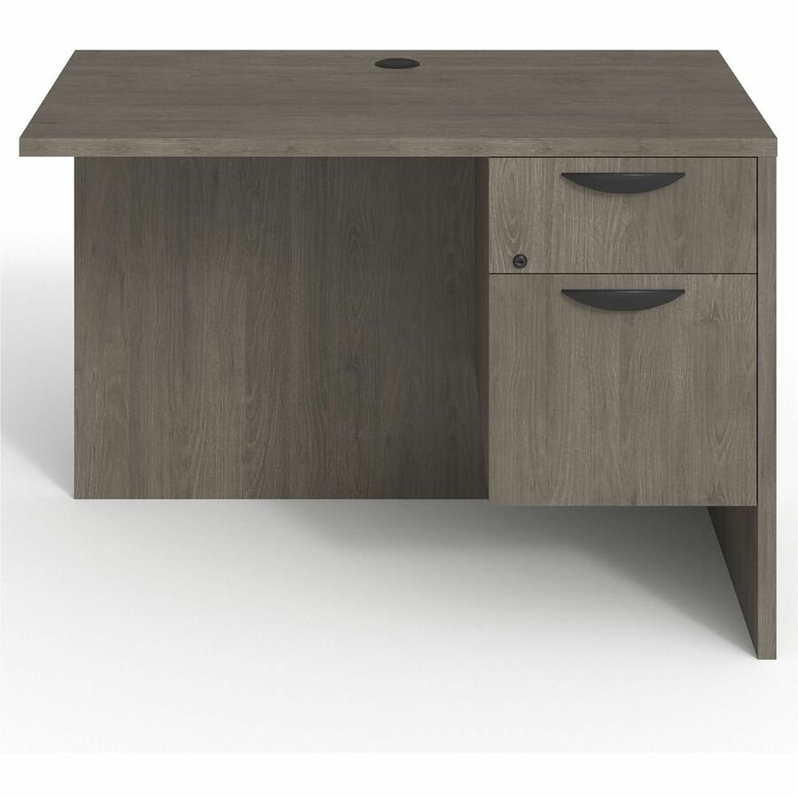29" Height x 42" Width x 24" Depth, x 1" Thickness Top - Total Drawer(s): 2 - Single Pedestal on Right Side - Band Edge - Material: Particleboard - Finish: Gray Elm, Thermofused Melamine (TFM), Laminate - Durable, Mar Resistant, Burn Resistant, Impact Resistant, Modesty Panel, Ball Bearing Slides, Lockable Drawer, Built-in Hangrail, Adjustable Glide, Grommet, Cord Management - For Office - 1 Each