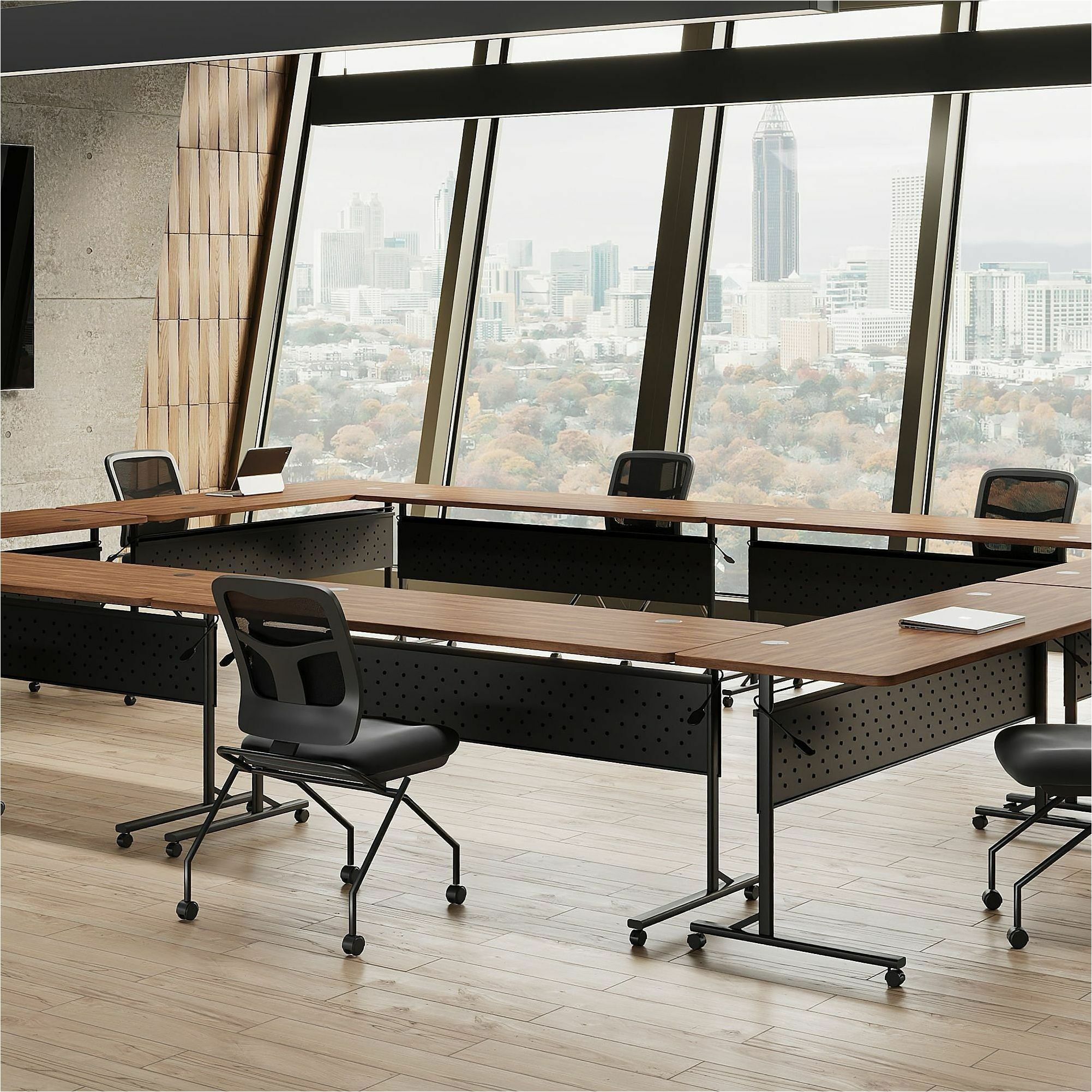 | Marketing Information | Tabletop with a straight edge is the worksurface portion of Lorell Electric Height-Adjustable Workstations. It fits on Lorell Quadro Sit/Stand bases with button controller for a more versatile way of working so you can alternate between sitting and standing. The bases (sold separately) come in black or silver. 1" thick tabletop features a 3mm thick PVC edgebanding that matches the Walnut laminate finish on the top surface. |