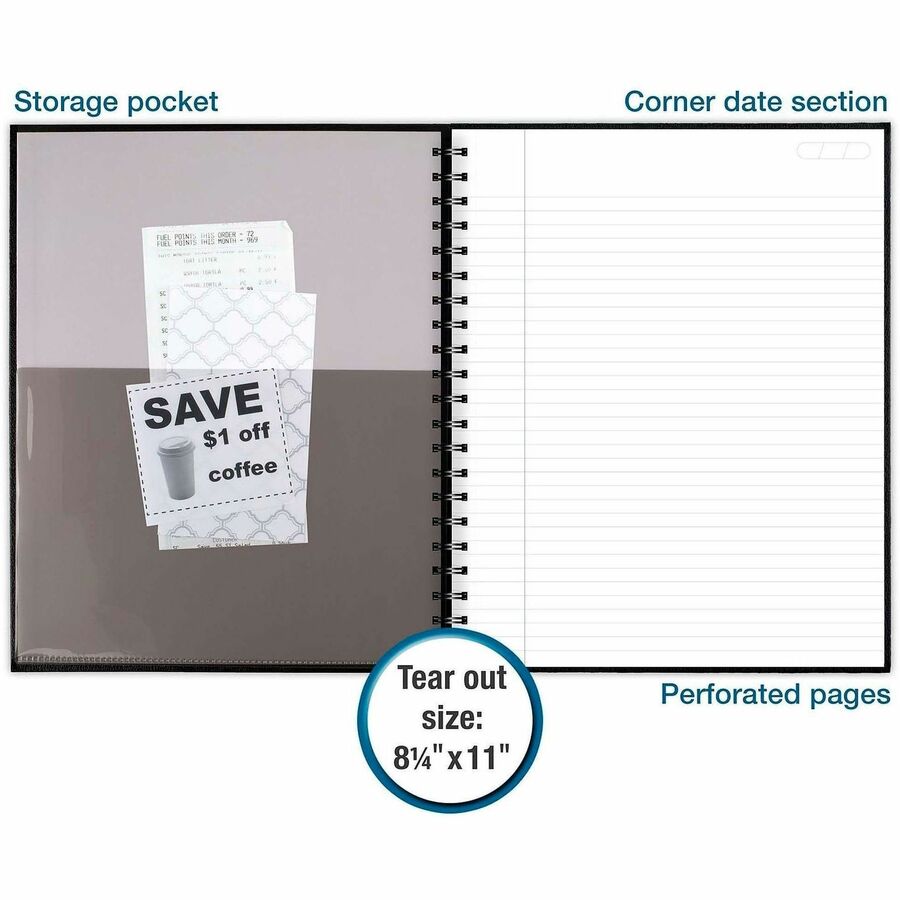 96 Sheets - Wire Bound - 0.28" Ruled - 20 lb Basis Weight - Letter - 8 1/2" x 11" Sheet Size - White Paper - Black Linen Cover - Pocket, Tab, Bond Paper, Perforated, Bleed-free - 1 Each