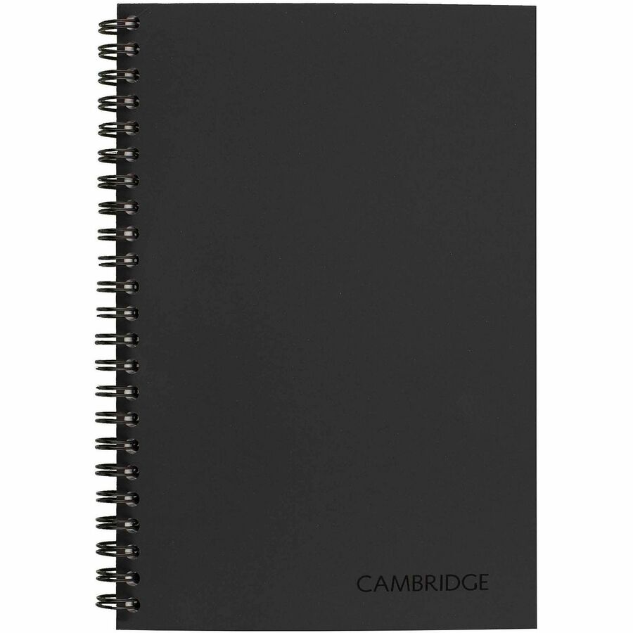 | Marketing Information | Business notebook with Quicknotes features unique yellow notes area to highlight important to dos, tasks and phone calls on each page. One-subject format includes 80 sheets made of premium, 20 lb., recycled white paper. Each sheet is ruled for neater notes and perforated for clean removal. Wirebound notebook is side-bound and has a black linen cover with a silver foil-stamped, Cambridge logo. |
