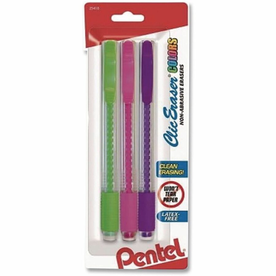 Retractable pen-shaped eraser offers a clean and easy way to erase pencil markings. Click to advance as much as you need. Click to retract to keep eraser clean. Nonabrasive eraser removes graphite lead marks cleanly and completely. Solid barrel offers maximum comfort and control with the latex-free grip. Refill with Pentel ZER-2 refill. |