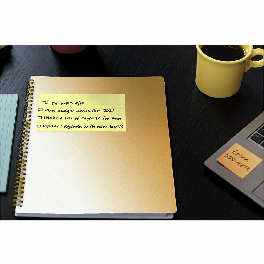 | Marketing Information | Post-it Notes are the perfect size for notes, numbers and lists. Self-stick removable notes stick securely and remove cleanly. Familiar and attention-getting, Canary Yellow Notes help get your message across. Post-it Notes are recyclable, and the paper in Post-it Notes is sourced from certified, renewable and responsibly managed forests. |