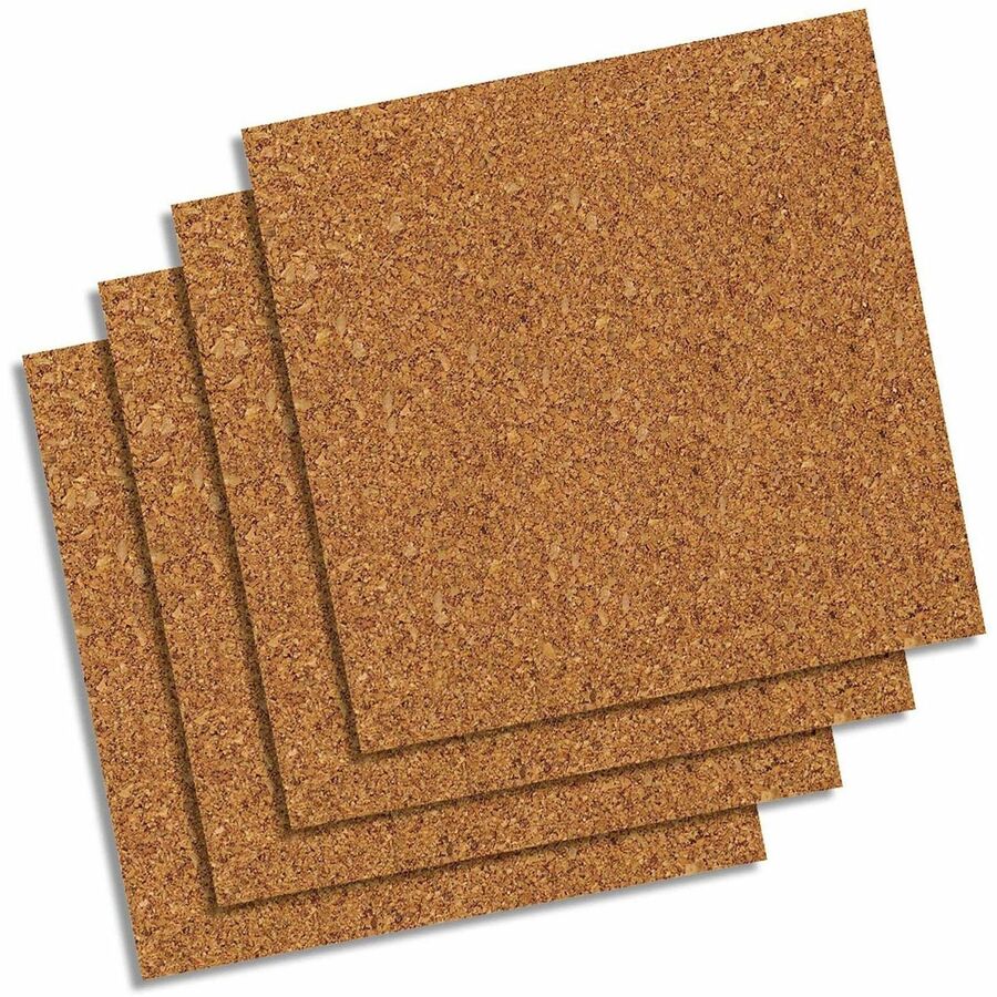 | Marketing Information | Build a bulletin board of any size and shape with versatile cork panels. Use pushpins to securely hang documents, photos and more from these self-healing square cork tiles. 3/8" thick cork panels can be used separately or together to create a customized bulletin board. Included adhesive tape for mounting makes it easy to hang and fit tiles any space. |