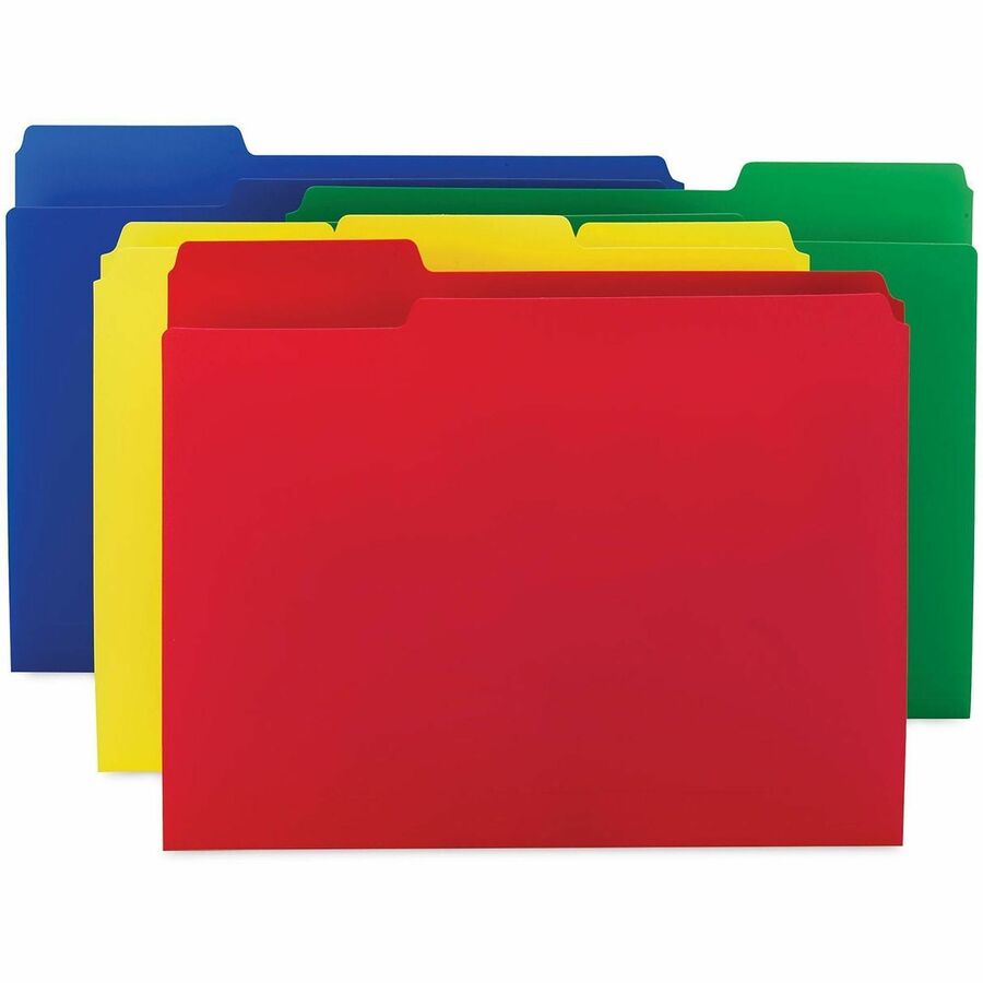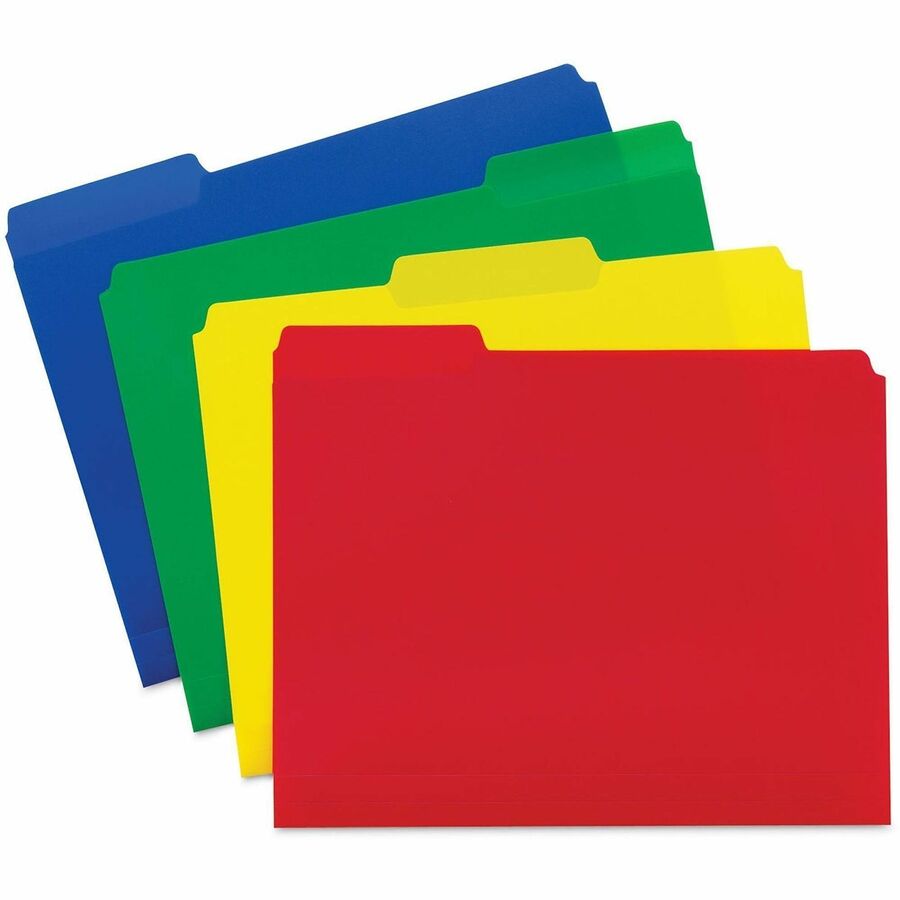 - Each colored poly file folder features a 1/3-cut tab for hassle-free organizing and maximum efficiency so you can always find exactly what you need when you need it