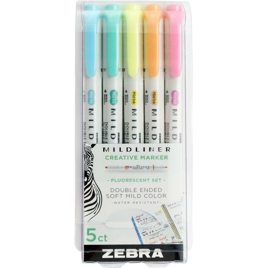 Zebra Pen Mildliner Double Ended Highlighter Assorted Fluorescent 5Pk